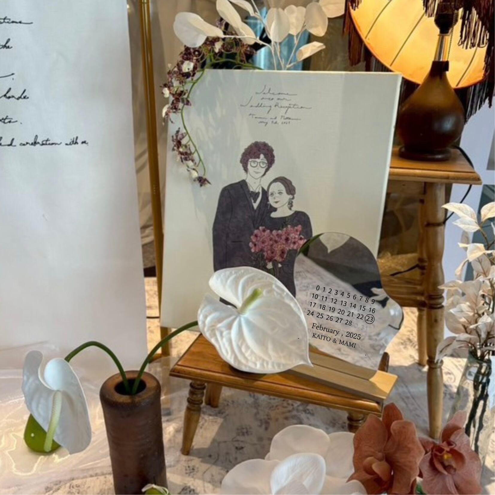 予約販売 wedding【ミラー付きカレンダー ステッカー】 お急ぎ対応可 ウェルカムミラー ウェルカムボード ウェディングステッカー 結婚式ステッカー マルジェラ風