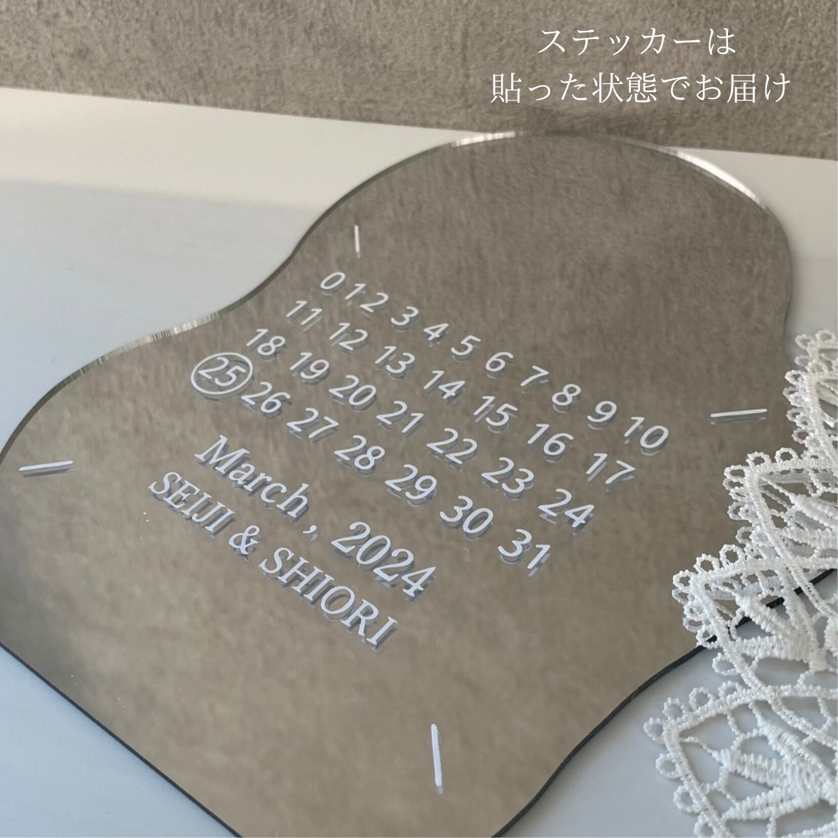 送料込 wedding【ミラー付きカレンダー ステッカー】 お急ぎ対応可 ウェルカムミラー ウェルカムボード ウェディングステッカー 結婚式ステッカー マルジェラ風